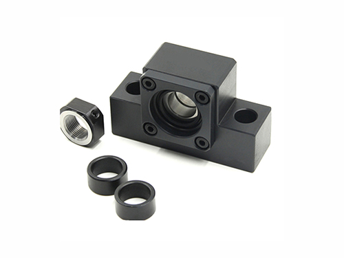 支撑座是连接丝杆和电机的轴承固定座,是对标准滚珠螺杆的轴端成品,预备了标准化的支撑单元EK、EF型,对一般滚珠螺杆预备了标准的支撑单元BK、BF型。固定侧的支撑单元装有经预压调整的JIS5级的角接触球轴承。特别是在EK6、8的超小型式中,装有为超小型滚珠螺杆所开发的接触角45°的超小型角接触球轴承,能获得高刚性、高精度的稳定的回转性能。 支撑侧的支撑单元使用深沟球轴承。支撑单元EK、BK型的内部轴承中装入了适量的锂皂基润滑脂,用特殊密封垫圈进行密封,能直接安装,长期使用。